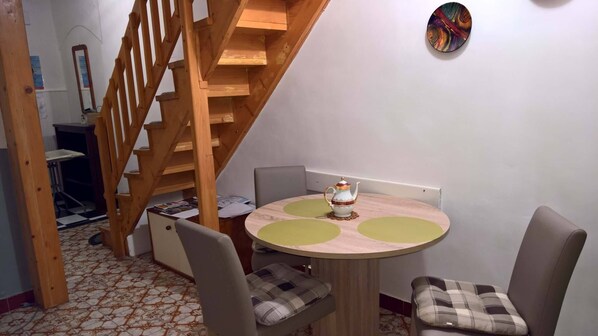Habitación n. ° 1 Habitación doble, cama doble, alfombra Habitación n. ° 2 Habitación individual, alfombra, cama individual o sofá con una cama que se puede usar para sentarse y dormir cómodamente, sala de televisión, comedor, comedor y cocina en una habitación, mesa y sillas para cada persona; mediodía azulejos / utensilios de cocina, ollas, cubiertos, etc. provistos, vajilla, cocina eléctrica, número de anillos: 2, refrigerador con congelador Baño baño con inodoro, con ducha. alojamiento: posible uso de internet (incluido en el precio), ventilador, cambio de sábanas semanal, toallas (1 grande, 1 pequeña / por persona y semana), no mascotas, para esta unidad de alojamiento la tarifa de limpieza final está incluida en el precio total . . Limpieza final • Internet, aire acondicionado y calefacción Incluido en el precio y todos los impuestos