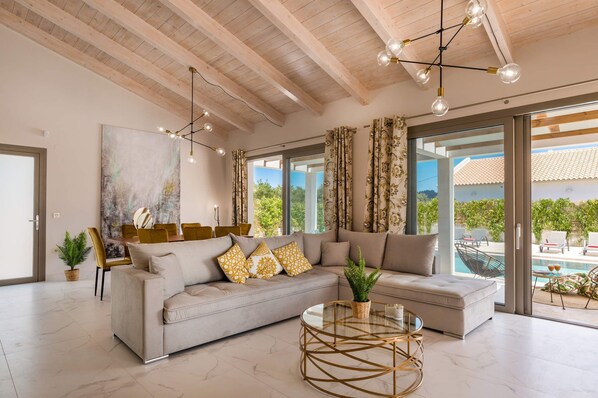 The villa was amazing, spotless and comfortable. Very modern and spacious on the edge of the resort in a quiet location. The beach, supermarket and cafes and restaurants were all walkable. The well heated pool, pool table and table tennis were greatly enjoyed by my children since we went end of season and could only spend a few hours on the beach. The host was very helpful. Always replied quickly to messages. She even provided a welcome pack and took the family shopping on our arrival early evening.The bus service was a bit limited being end of season but there was a reliable ditto train 25 minutes walk away that took us to Zante town and Laganas and the turtles. Would fully recommend.