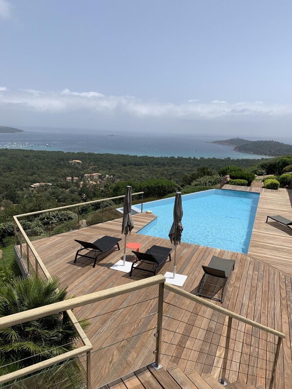 Pueblo de Pinarello, piscina infinita climatizada, vista panorámica de la bahía.