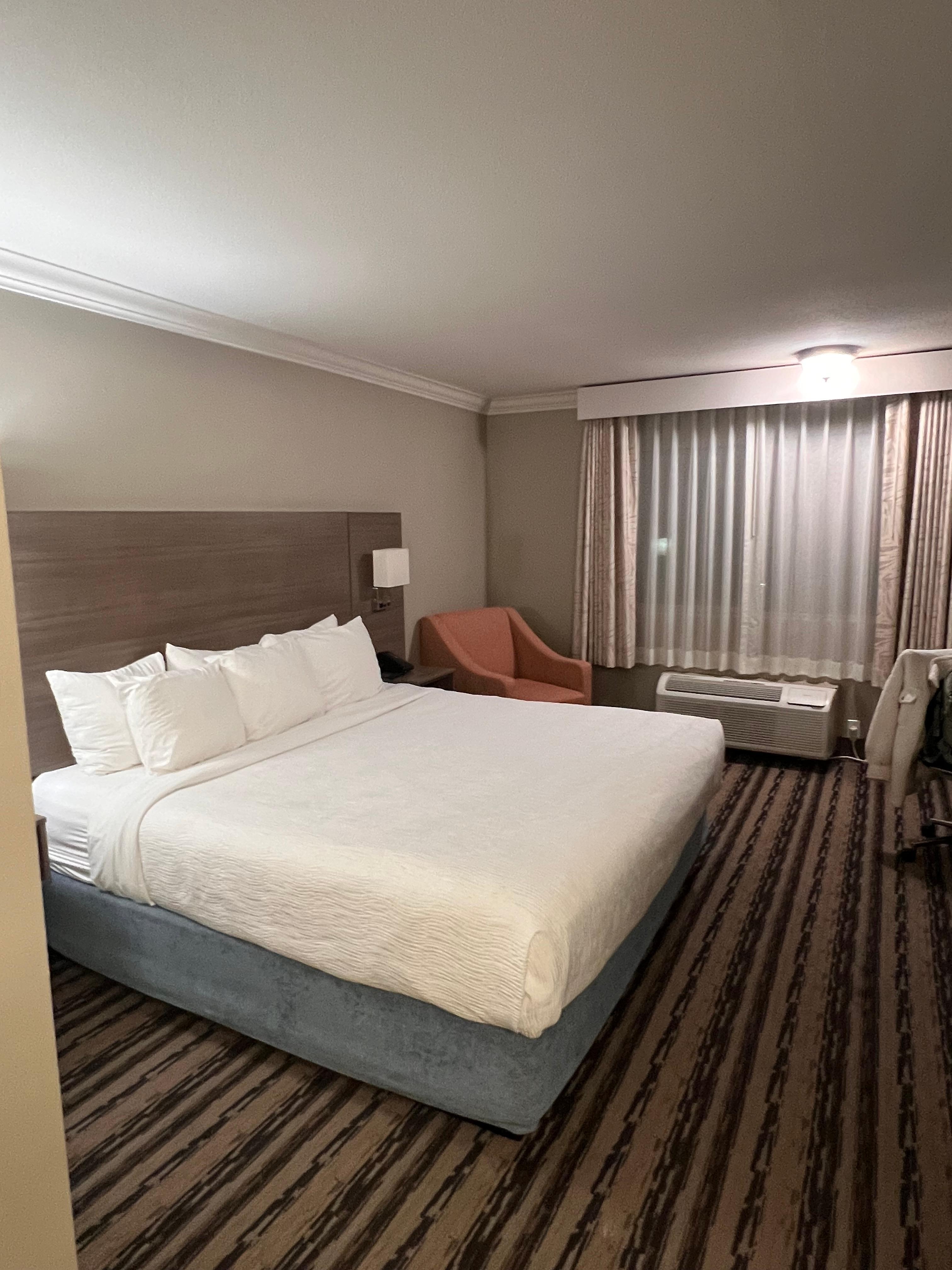 Room was overall clean, you can almost smell the bleach from the cleanliness in the bathroom. Staff was friendly quick and easy check-in. Free parking ! Close to Disney’s parking lot structure ! & affordable! Second time staying here & I would recommend for a quick affordable stay. This is nothing fancy so it’s worth just to rest and sleep and enjoy the parks.