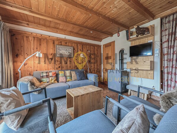 Idéalement situé, à proximité du vieux village, à 2' à pied du départ du funiculaire. Chalet sur 2 n