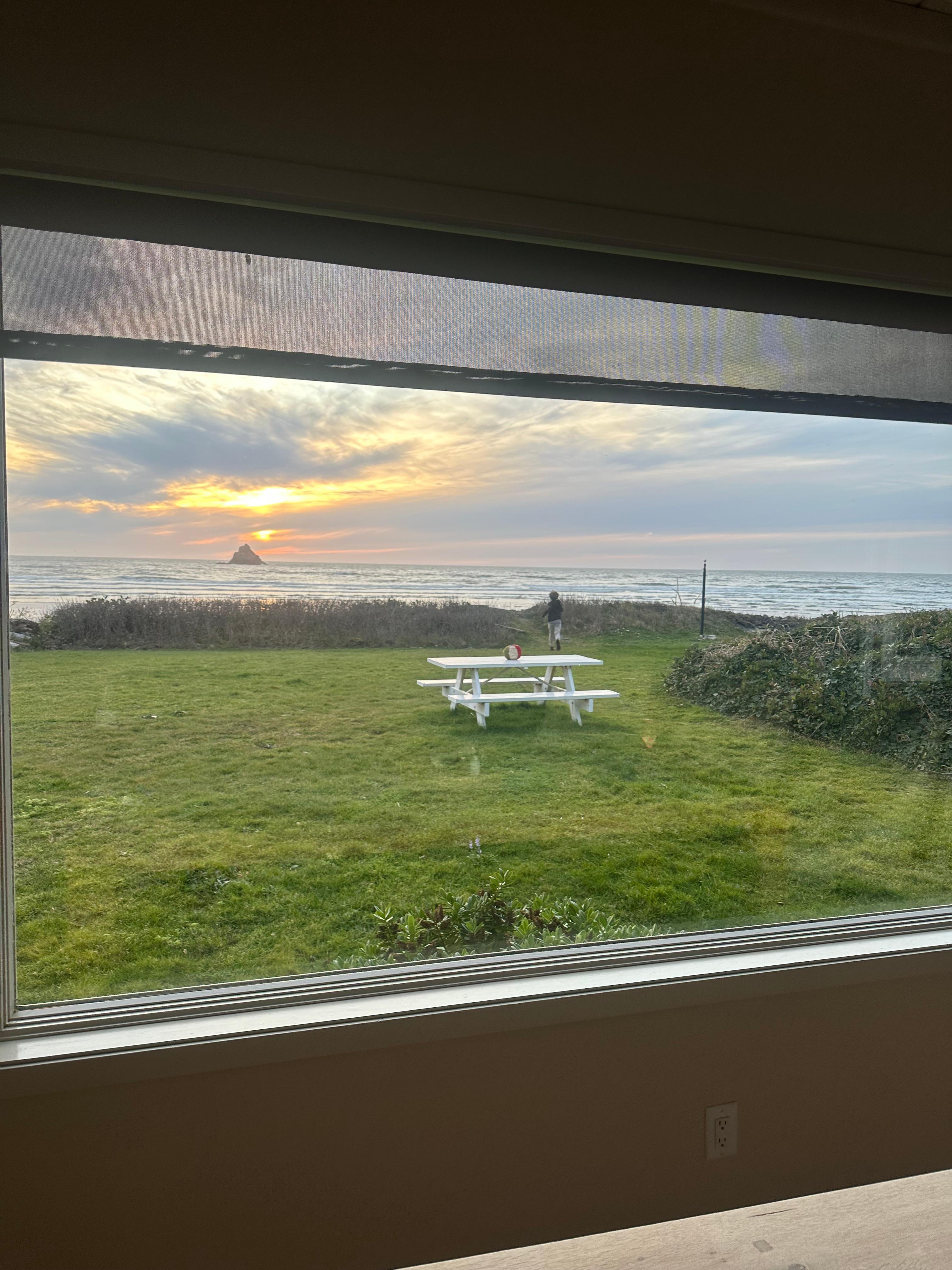 With three bedrooms and an open, comfortable layout, the home is well suited for families and multi-generational groups. Large picture windows frame the ocean from the main living areas, where guests can relax by the stone fireplace with electric insert, enjoy dramatic storm watching in winter, vibrant sunsets year-round, and, at times, even glimpse whales passing offshore.