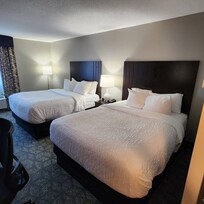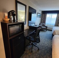 Hotel inside & outside is very clean. Plenty of Safe Parking. Hotel Staff were Welcoming. Excellent Climate Control in rooms and everything worked great (except TV Remote in my room was stubborn to power On/Off). Rooms are clean & Quiet, but recommend bringing a fan or whitenoise device just in case. Beds --though new & plush-- were much Too Soft for me/my back, I had to make a Pallet on the Floor in order to sleep. I booked thru Expedia (known for giving Users a "Final Total Price") however, I was very Unpleasantly surprised at check in to be told the Hotel charges an ADDITIONAL $8/Night for 'hotel expenses'..! Since they offered "complimentary" pretzels, coffee, ice cream, and soup, I'm guessing that's the reason --I'd had rather kept my $16 & bought some Pastries at Governor's Restaurant down the road! Breakfast was good b/c of offering Protein choices like prepared Omelets with Sausages or breakfast sandwiches. There was also juice, coffee /liquid creamers, waffle maker, Fruit loops & Plain Cheerios, oranges, yogurt, toast and bagels available (just needed Raisan Bran and some pastries to reach perfection). Seating area is small, but there are 2 outdoor areas to sit as well as their cozy, nicely decorated Lobby.