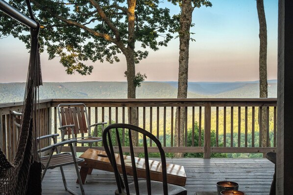 Los grandes porches proporcionan un espacio al aire libre maravilloso que le ayuda a sumergirse en ese punto de vista de 180 grados de las montañas y el valle. Hay incluso un sofá columpio para que pueda tomar una siesta o disfrutar de la vista con varios de sus amigos o familiares más cercanos.