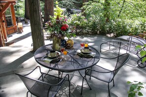 La suite de dormitorio bellamente decorada tiene vistas pacíficas del cañón a través de las ventanas y ropa de cama acogedora y elegante en un nuevo colchón Queen Memory Foam de alta calificación (2017) de primera calidad. Esta elegante habitación tiene techo abovedado, sala de estar separada y armario grande. Relájese después de un día de exploración dándose una ducha bajo la ducha de lluvia en el baño principal recientemente remodelado. El dormitorio también tiene acceso a una terraza exterior que da al cañón. La cabaña tiene un encantador porche delantero y un gran patio lateral donde puedes desayunar, almorzar o cenar mientras disfrutas del paisaje y los sonidos de los pájaros en el hermoso cañón. En una cálida noche, relájate en los salones de persecución, saborea un chocolate caliente y maravíllate con las estrellas.