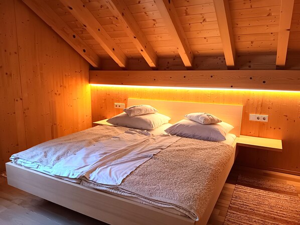 ski storage(reachable from the outside), infrared sauna(6 persons), sauna(private), heating(floor heating), garden(shared with the owner , non-landscaped garden, unfenced), garden furniture, BBQ(charcoal), 4x parking, deckchairs, table football, 1x children's bed (incl. bed linen), 1x high chair