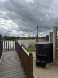 Very beautiful stay! Very peaceful and relaxing!! Definitely worth the value! It was very Cosy, and when lighting the fire it heated up the whole pod very easily! Hot tub was really relaxing, easy steps and instructions on how to use it and the fireplace. Each pod had box’s for you to buy wood from by scanning the QR code so no need to leave your pod!! The pod came with a very nice bed and lovely bedding! Soft pillows and duvet. Tv provided with channels, Netflix, YouTube etc. Very cosy at night sitting watching the wind outside, whilst being inside with the fire going, on the sofa watching tv. The kitchen provided a microwave , kettle, fridge freezer and hob. Had all utilities in order for you to cook. Also tea towel, sponge, washing up liquid, Tea, coffee and sugar provided. Definitely was an amazing stay. Tescos and a town centre very close by!