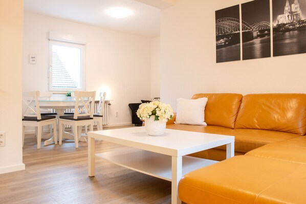 The comfortable almost 80 sqm apartment is located on the ground floor of our well-kept holiday home in a convenient location to Cologne. Through the private garden area with a large outdoor seating area and small garden pond, a separate entrance and private parking, it offers families with children as well as business travelers an ideal domicile to relax and feel good.
