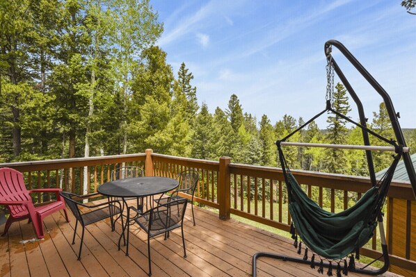 Step out onto the back deck, where sweeping views of the Colorado landscape set the stage for peaceful mornings and golden-hour sunsets. Out front, enjoy a BBQ grill and outdoor dining area—ideal for grilling up dinner and dining under the stars.