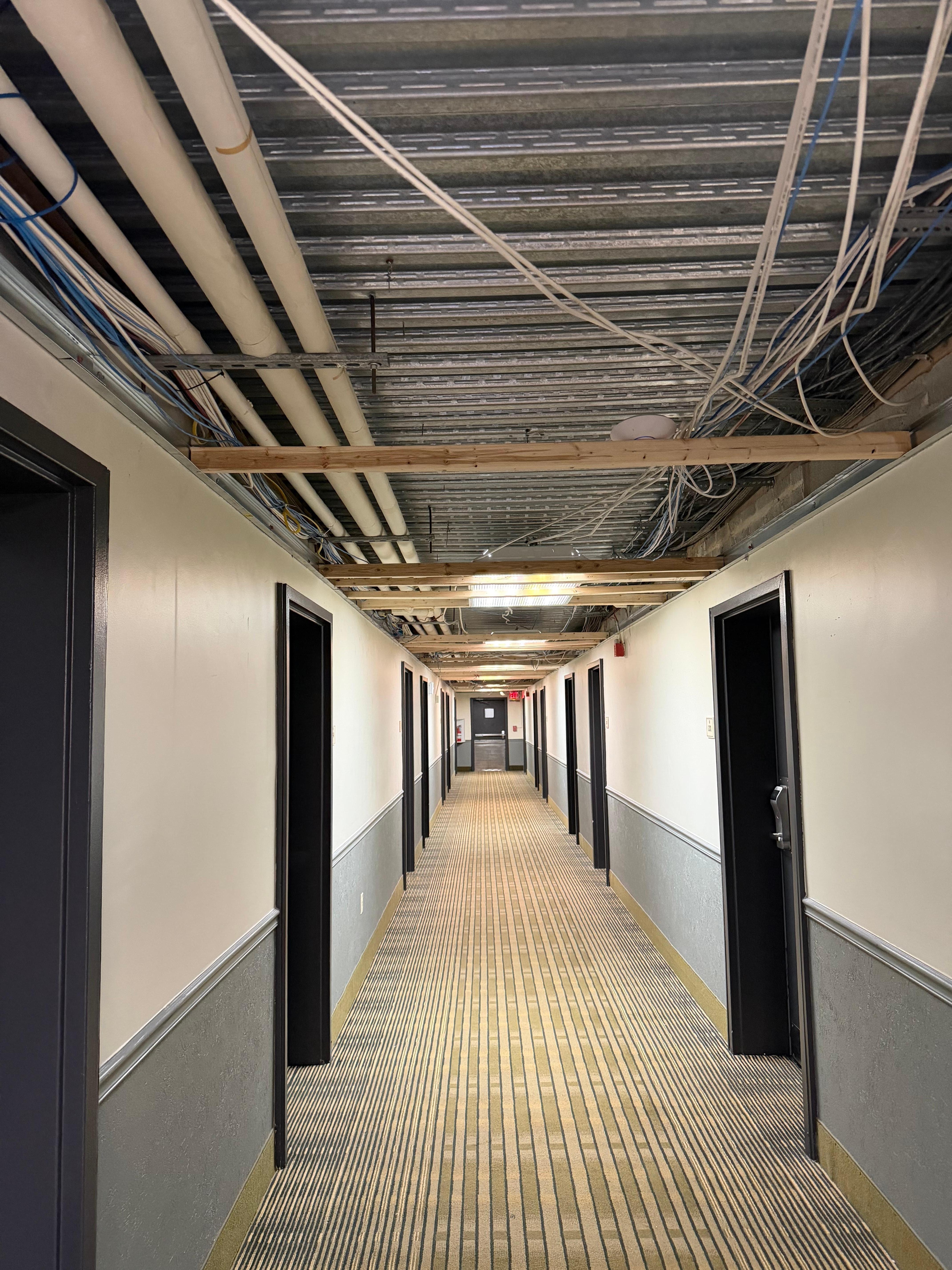 Las habitaciones, con muy mal olor y todos los pasillos a las habitaciones sin cielo raso, se ven los cables eléctricos y muy mal aspecto de las personas en la recepción