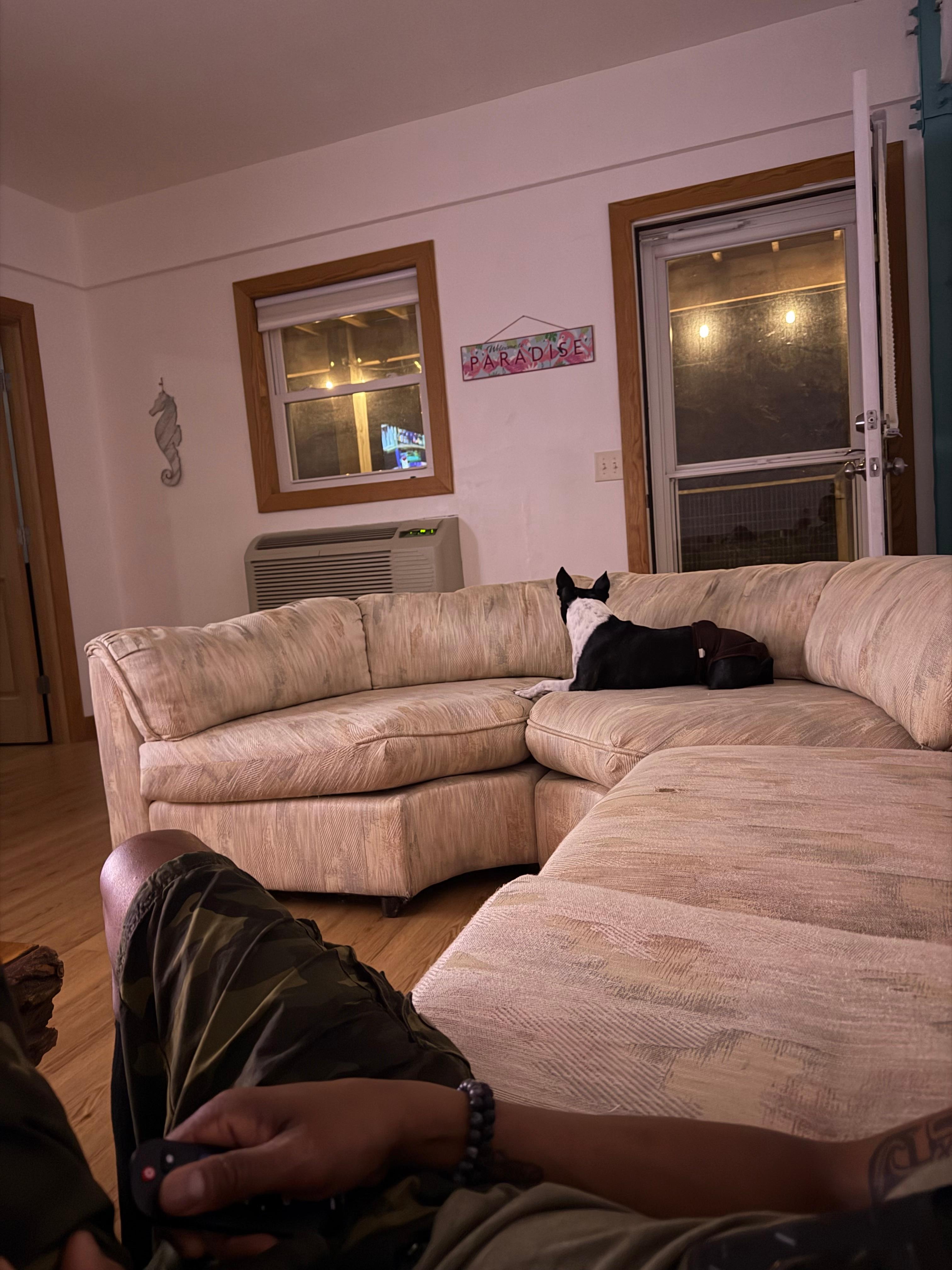-Downstairs living room with huge sofa. Great for movie night!