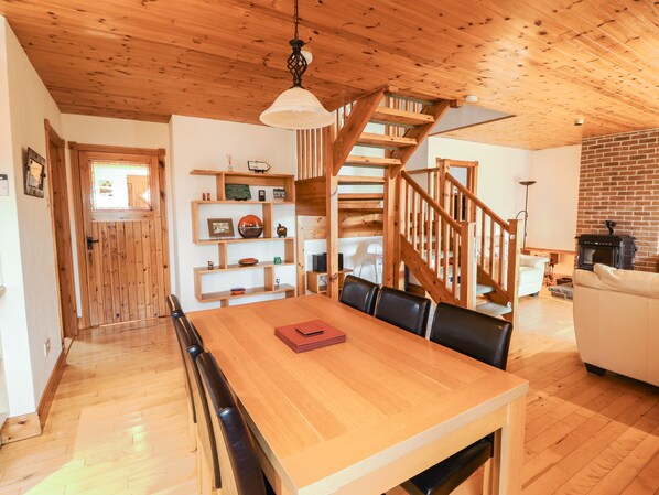 Amenities: Multi-fuel stove. Electric oven and hob, microwave, fridge, toaster, kettle, dishwasher, washing machine, tumble dryer, TV with Freeview, a selection of books, CDs, WIFI, DVDs and kid's toys. Travel cot and highchair available. Fuel and power inc. in rent. Bed linen and towels inc. in rent. Off-road parking for several cars. Rear decking area with furniture. Sorry, no pets and no smoking. Shop and pub 2 miles.