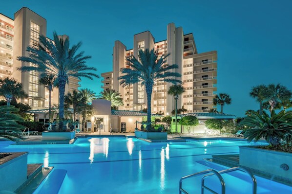 When you're ready for leisure, you can head to the large tropical pool area. Surrounded by lush palm trees and swaying foliage, this oasis offers a serene escape. Take a refreshing dip in the sparkling waters or soak up the sun on the comfortable lounge chairs. The pool area provides a tranquil atmosphere to unwind and rejuvenate.
