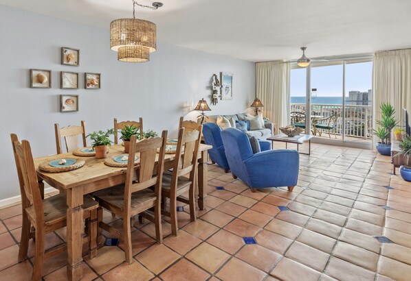 From our private balcony, you'll enjoy the breathtaking views of the Gulf, the serene lake, and even views of the harbor at a distance. We're facing west with front row views of the most amazing emerald coast sunsets. You could be sitting outside sipping your morning coffee or inside, in the kitchen cooking and enjoy the colors of the sun rising and setting, with the radiant lights coming right through the room. It's quite spectacular. From the master bedroom, even if laying down in the bed you'll have nothing but glorious views.