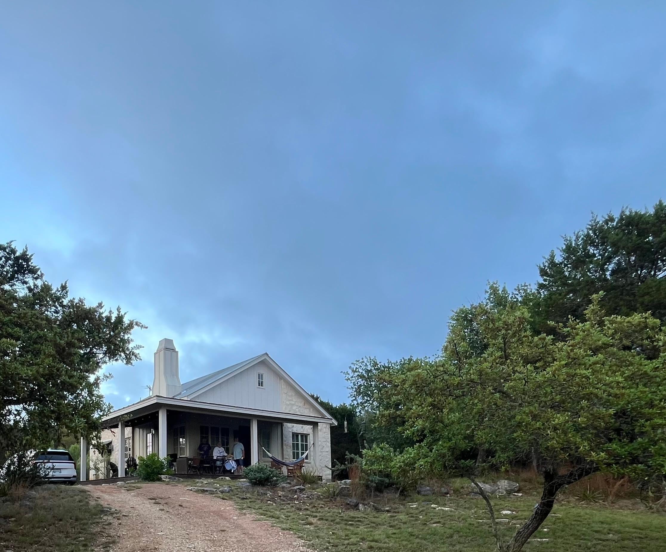 Monticello Cottage is a beautiful, newly built cottage, situated on its own hill, overlooking miles of trees, with exquisite sunsets, starry night skies, fresh air and peace and quiet. The cottage has a fireplace, a fire pit on he porch, gas grill, large loft upstairs, bicycles on request, and a fully equipped kitchen for cooking delicious meals. The deer and little fox, the wild birds and hummingbirds add to the pleasure of this place. This area in known for its wineries, weddings venues, hiking trails and swimming holes. Monticello Cottage is a sanctuary for writers, musicians and readers, couples, business retreats, Wedding stays, is a fun place for families and great for friends to gather and spend time together, grilling on the porch, birdwatching, sitting in front of the fire, or outside on the porch, cycling, or visiting all the interesting wineries, swimming holes, hiking trails, and nearby towns, like Fredericksburg Johnson City, and Wimberley, The beds all have new, top grade mattresses and fresh, cozy bedding, the bathrooms are equipped with shower gels, shampoos and hairdryers, and the pantry is stocked with cooking supplies, herbs, spices, teas and coffee. There is a rice cooker and coffee grinder, pots and pans, good crockery and cutlery, wine and champagne glasses, a washer, dryer and detergents. It is so quiet here at night, you may just hear a lone frog somewhere in the distance. The Primary bedroom has a Kingsize bed with en suite bathroom, guest bedroom has a Queen bed with bathroom en suite, and the upstairs open large loft has a queen bed, twin bed, futon and half bathroom. The upstairs loft closet is packed with toys and books for children too, as well as 2 high chairs and"Guava" Pack n Play in the walk-in closet. We live on the 2.5 acres on the other side of the property, so are available at all hours, but respect your privacy. There is a pet fee of $60 per pet per stay. EV Charger available