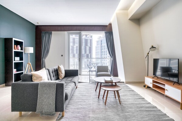 This furnished apartment is in Business Bay, a multicultural neighborhood that attracts working professionals, couples, and families. It's near the Dubai Mall and Dubai Design District.