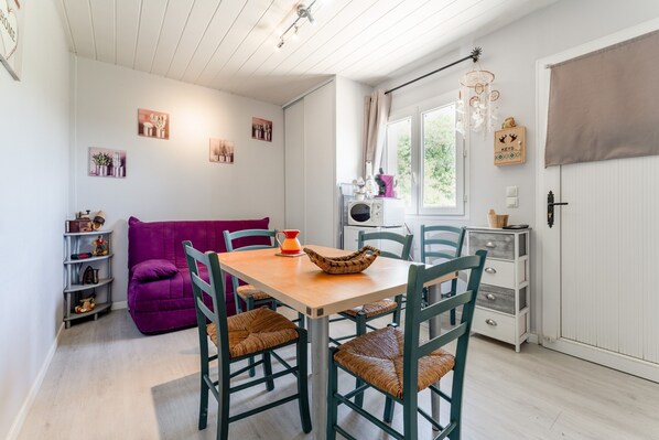 Casa climatizada de 30 m² que incluye: salón, dormitorio, cocina equipada y baño. Se proporcionan sábanas y toallas. En el exterior, disfrutaréis de una terraza sombreada y barbacoa.