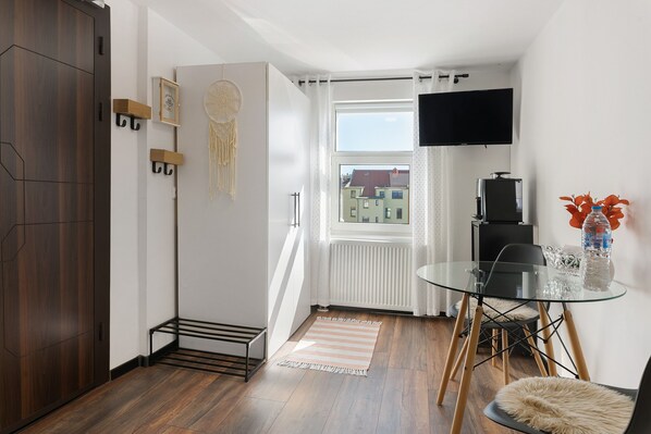 Apartment Ferienwohnung Leviq in Gera offers 21 sqm of space for up to 2 guests. You have 1 living room, 1 bedroom, and 1 bathroom during your stay. A private fully-equipped kitchen is available for your convenience. Amenities include private television and WiFi for your use.