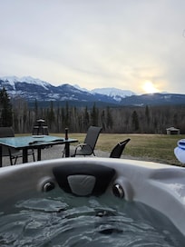 I wasn’t sure about this property when we booked it but I was pleasantly surprised! I have stayed at many properties that look nice but everything else is cheap ie: beds, furniture and so on. This one was different. The beds were higher end memory foam and very comfortable. The furniture was very nice with a live edge kitchen table. Then there was the true gem of the property… the hot tub overlooking the mountains and a large green space behind the property which was also great for the dogs. The only draw back I could find was that it was right on the highway (although there is a berm to help cut the traffic noise). Also, there is junk yard on the other side of the highway that kind of ruins the view out the kitchen window but these are small issues. Also if you aren’t into trains it might be a problem as there is a track at the edge of the property. However, there was never more than 5 trains a day and they never honked their horns unless the kids asked were waiving. So if you have kids into trains they will love it. All in it was a great stay, especially at the price we paid, and me and my family are looking forward to staying there again.
