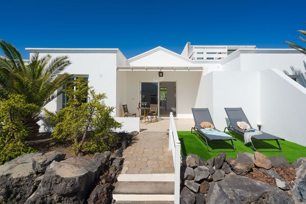 El bungalow dispone de una amplia terraza privada (delantera)