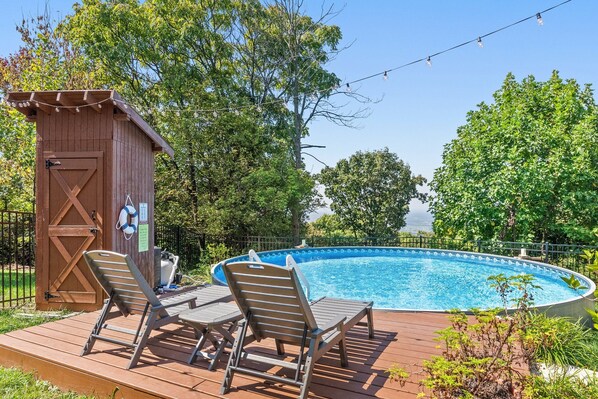 Trying to decide between dramatic views and a poolside escape? How about both! The pool at this mountaintop cabin is perfectly situated to soak in the 100-mile views over the Shenandoah Valley. Once you've had enough sun, curl up on one of the man porches for a lazy afternoon, or wind down the day at the rock fire pit. When the weather cools you can warm up indoors at the pellet stove in the epic great room. You are going to love this cabin escape!