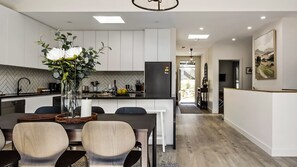 Perfectly positioned in Hepburn Springs, just a short stroll from the Hepburn Bathhouse, cafés, and restaurants, Retreat on Church offers a peaceful yet well-connected escape. Designed to cater to families, friends, and groups, this thoughtfully curated retreat is made up of two stylish, self-contained properties within one dwelling—Roxy on Church (3 bedrooms, 3 bathrooms) and Fox on Church (2 bedrooms, 2 bathrooms). Together, they offer flexibility and space, whether you're traveling as a couple, a family, or a larger group.