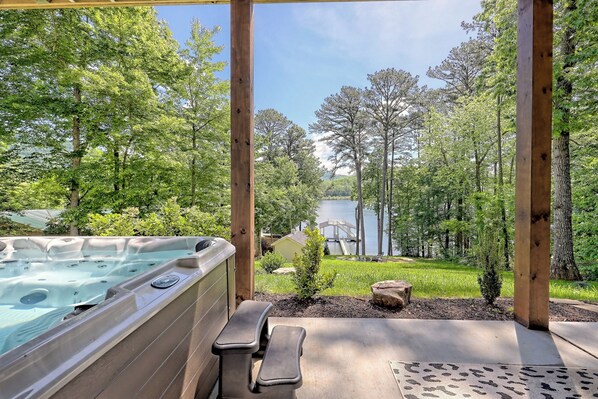 Experience unparalleled luxury in this brand-new lake house on Lake Chatuge! 5BR,4.5 BA, this stunning retreat offers ample space and comfort. Unwind in the hot tub, enjoy the outdoor fire pit, or relax by the fireplace on the deck. Take the kayaks out on the lake or challenge friends to a game of ping pong. Featuring two living areas, this lake house is perfect for both family gatherings and peaceful getaways. Reserve your dream vacation now.