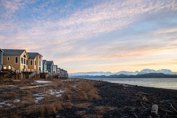 Enjoyed being back in Homer where I grew up. Property provided space for four couples easily-rented both places. Kitchen well equipped. Loved access to the beach.