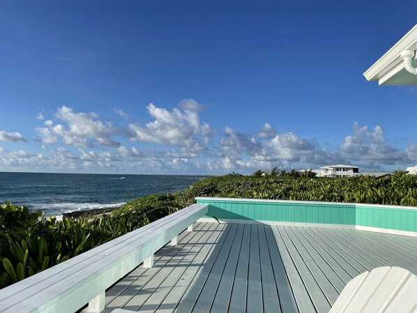 Esta fue la primera casa situada en este tramo aislado de la playa de White Sound, construida en 1982. La casa y sus terrenos se han mantenido y actualizado periódicamente y, desde su construcción, se han adaptado a todas las comodidades modernas. Con los años, el tiempo y las tormentas han empujado la costa cada vez más cerca de la propiedad, ofreciendo vistas únicas espectaculares desde el porche delantero. La propiedad se encuentra perfectamente entre el encantador pueblo de Hopetown y las serenas arenas blancas de la playa de Tahiti, con bares, restaurantes y tiendas en el medio. Aunque este es un paraíso para los caminantes, la isla está dominada por los carros de golf, que se pueden alquilar a través de nuestro cuidador. El segundo nivel de St. En algún lugar está rodeado de ventanas, ofreciendo una vista de 360 grados de la isla y su belleza. La cubierta delantera expansiva es excelente para relajarse y relajarse con una bebida y un buen libro, o para disfrutar de las comidas "a la vista" en la mesa de picnic, parcialmente a la sombra de un árbol fuera del comedor.
