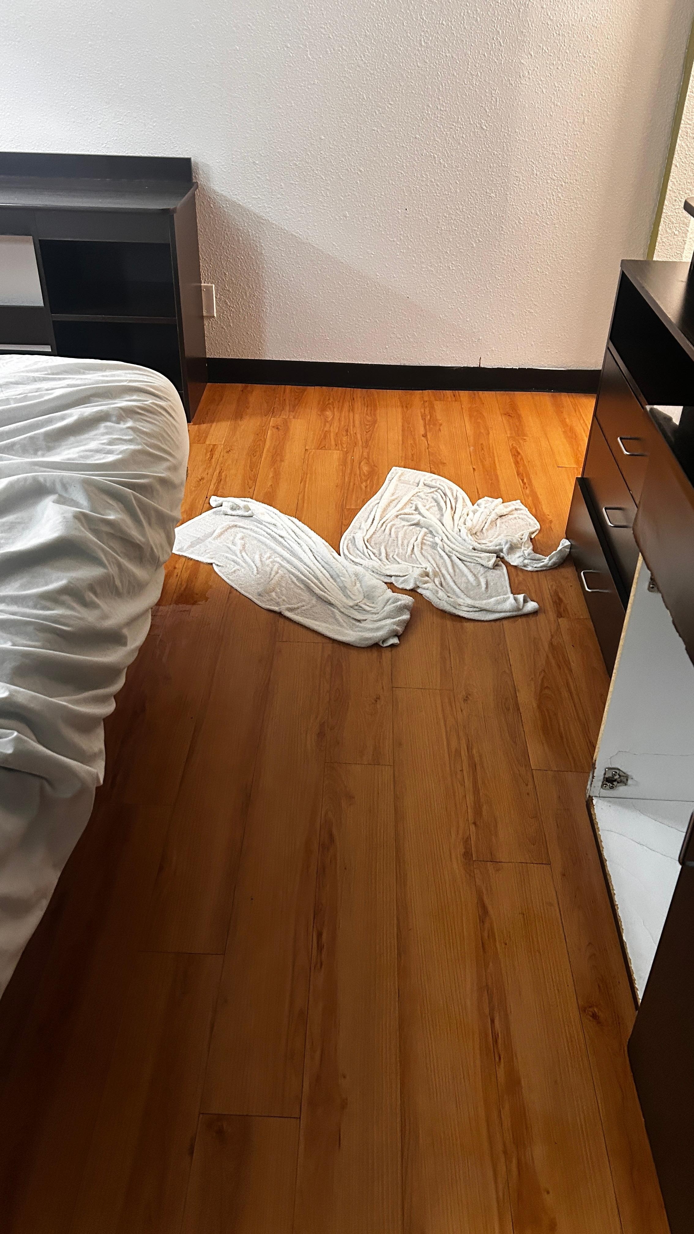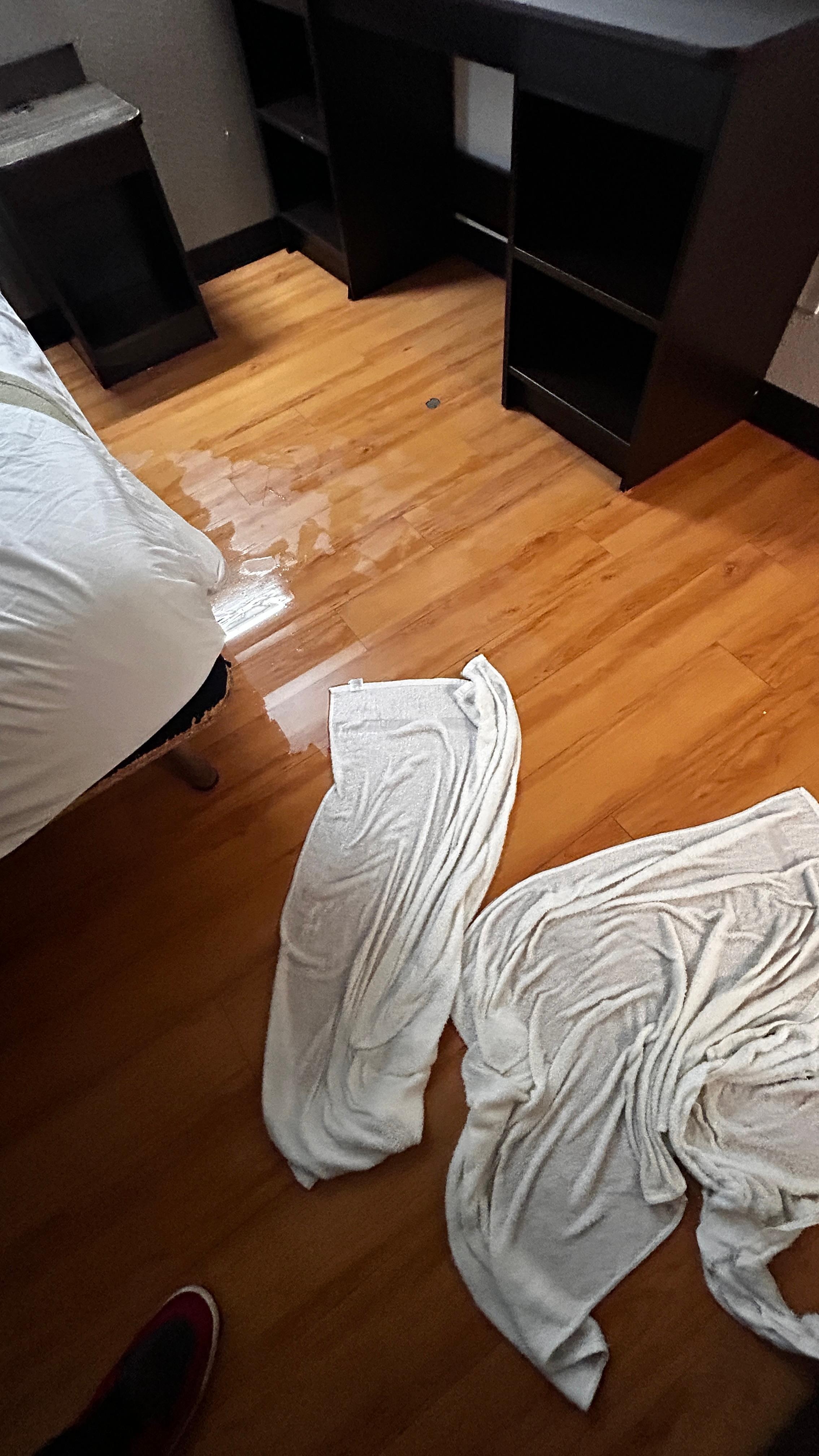 The room above me flooded and leaked into my room all over the floor. Everything was soaked