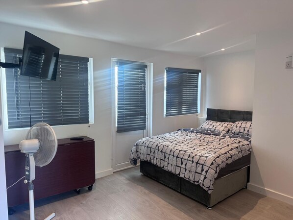 After a day of sightseeing, unwind in the plush bed, complete with high-quality linens, ensuring a restful night’s sleep. The modern bathroom offers a refreshing shower experience, stocked with essential toiletries for your convenience.