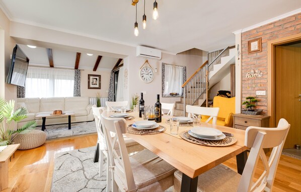 Esta lujosa y familiar casa de vacaciones le da la bienvenida a los pies de las montañas Pleivica y ofrece numerosos extras para todas las edades. Disfrute de armoniosas comidas en el acogedor comedor, charle con una copa de vino junto a la chimenea o regálese momentos de relajación en la sauna mientras los más pequeños se divierten con la PlayStation o el futbolín.