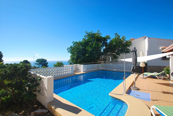 Villa with private pool, sea view and summer kitchen té piscina?