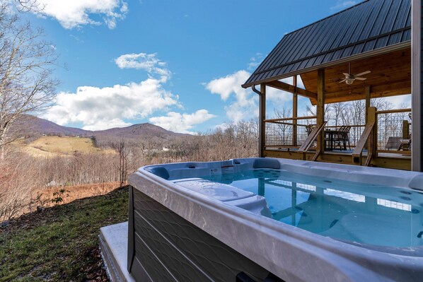 This stunning 2023 custom home is perfect for romantic getaways, family vacations, or simply a moment of solitude. Offering a cozy outdoor fire pit and 6-person hot tub, surrounded by beautiful woodlands and mountain vistas, it's the perfect retreat to reset and reconnect. Mere minutes from historic West Jefferson, you can explore all downtown has to offer before returning to this 3-bedroom, 2.5-bathroom home to dine al fresco on the spacious deck at sunset.