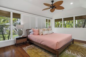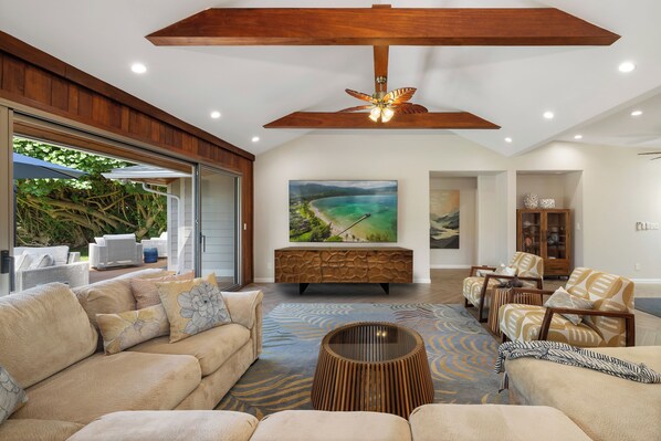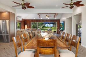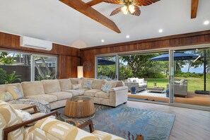 We have stayed in a lot of beach houses on Oahu on the North Shore and in Waimanalo and Kailua. This one was the best by far. The beach is one of the best we have experienced anywhere in the world with perfect sand, warm waters and clean waves to body surf. The location of the house is also perfect -- five minute drive to downtown Kailua and on a quieter stretch of beach a five minute walk from Kailua Beach Park. What distinguishes this place from other great houses we have stayed at, however, is the sprawling back yard that fronts the beach. It is even bigger and prettier than the pictures show. Our entire family (6 adults and two girls 10 and 7 yrs old) spent many hours playing badminton, croquet, frisbee, eating dinner or just hanging out with a cocktail under the shady trees. The only tip I would have is to turn on the AC as high as possible when you arrive to cool the house down. The cool air doesn't ever fully reach the kitchen, but after our first day we were fine leaving all the sliding glass doors and windows open in the mornings and evenings and the living room AC on during the day. We would come back to this property in a second and plan to do so. And Kailua is the perfect place for a relaxing week, still with amenities such as Whole Foods and some good restaurants. Mostly though we just got take out and ate at home because we did not want to miss the beautiful evenings.