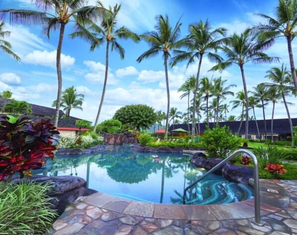 This resort is located in the most convenient and accessible location, one-minute walk to a beautiful and relaxing beach on the east side and one-minute walk to the west to a cozy and lovely plaza with restaurants, cafes, grocery stores as well as shopping stores to get memorable Hawaiian souvenirs. It is located right by the highway that takes you to all sceneries and beaches. There are many places to visit in Kauai but honestly I found the best and safest and very popular beach for swimming and snorkeling (Lydgate Beach Park) in 5 minutes drive from the resort. I suggest getting the snorkeling kit (you can also get it from the plaza located by the resort) and head to this beach and enjoy swimming and watching the beautiful colorful fishes.