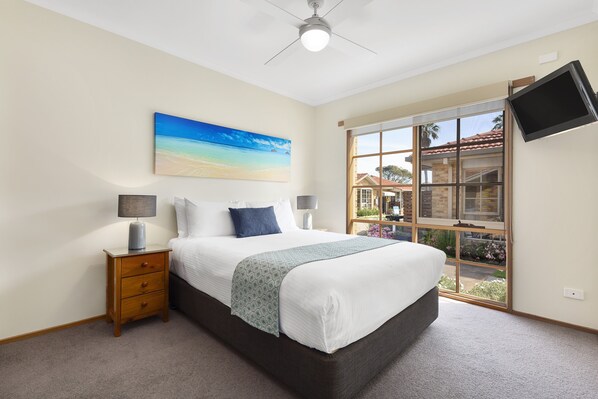 Aquest apartament a Lakes Entrance ofereix wifi gratuïta. Hi ha un televisor de pantalla plana amb canals per cable.