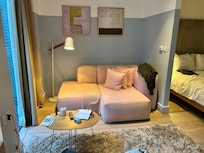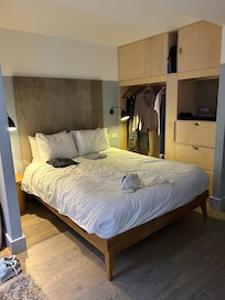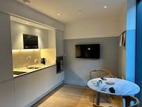 Great location to stay, well located to the tube system, but make sure the elevators are working! My room was a one bedroom suite withe a very helpful kitchen with modern fridge freezer and full cooking facilities, Dishwasher and laundry washer/dryer which allowed me to cook my own breakfasts before heading out. Bathroom was spacious although under supplied with towelling but extras were available from reception. No face washer cloths - staff told me management refuse to supply them. No tissues in the bathroom. Room was clean. Bedding was great. Elevators in the building are a major issue. One of the two was out all 8 days of my stay leading to a line of people waiting for the only one working and frustrating waits at any given time. One morning both elevators were out - not great when you're on the 14th floor.