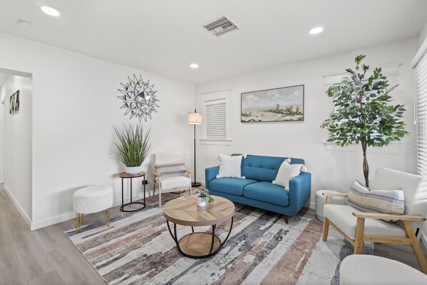 Have fun in a beautiful and colorful home for the entire family to enjoy. The Stylish Master bedroom includes a large Smart TV with streaming applications and comfy sofa.