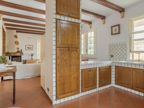 5-room semi-detached house 230 m2 on 2 levels on 1st floor. Practical and comfortable furnishings: large living room with fan. Exit to the terrace. Living/dining room with open-hearth fireplace and satellite TV (flat screen), fan. Exit to the terrace. 3 double bedrooms, each room with fan. Open kitchen (oven, dishwasher, 6 gas rings, toaster, kettle, microwave, electric coffee machine) with fan. Exit to the balcony. Bath/bidet/WC, shower/bidet/WC, hydro massage bath. Heating, gas heating. Heating available only from 01.12. to 31.03. Upper floor: (spiral staircase) open living/sleeping room 90 m2, with sloping ceilings, ceiling height 130 - 270 cm with 2 beds and air conditioning. Bath/WC, bidet. Heating, gas heating (extra), air-conditioning, forced-air heating. Heating available only from 01.12. to 31.03. Parquet floors. Balcony 24 m2, terrace 50 m2. Terrace furniture, barbecue (portable), deck chairs. View of the swimming pool and the garden. Facilities: washing machine, safe, iron, children's high chair, baby cot for up to 2 year olds (extra), hair dryer. Internet (WiFi, free). Parking (2 cars). Please note: smoke alarm, fire extinguisher. IT081011C22YQK945C