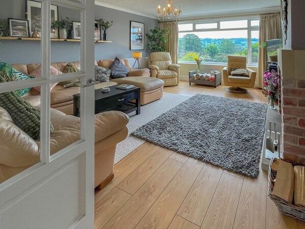 Living room: Smart TV, Bluetooth Speaker, Woodburner