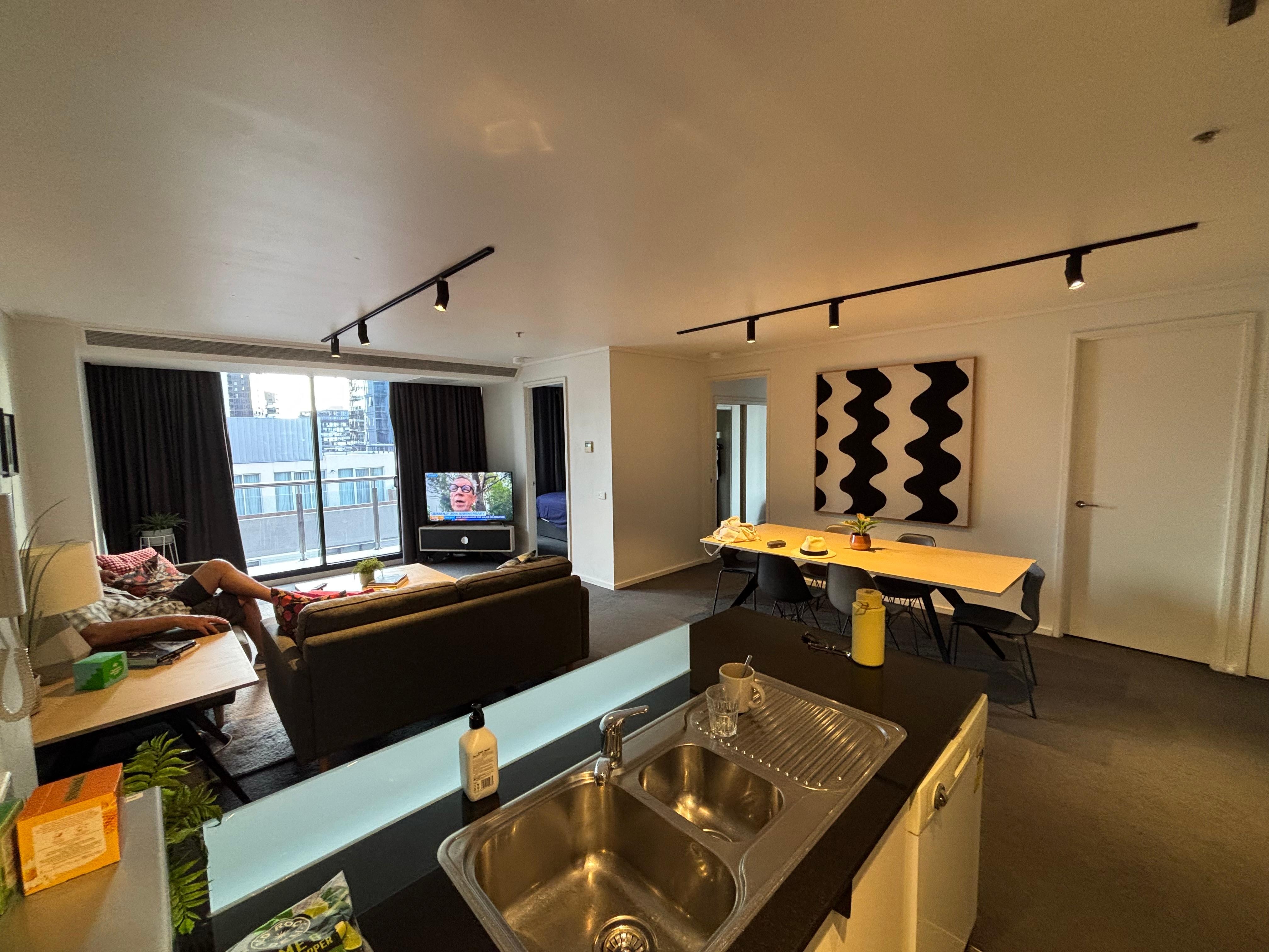 Este edificio de apartamentos de Melbourne para familias se encuentra en el barrio de ocio, a diez minutos a pie de Southbank Promenade y Crown Casino. Centro de convenciones y exposiciones de Melbourne y Collins Street también están a quince minutos. Estación de metro de Flagstaff está a 21 min a pie, mientras que Estación de metro de Melbourne Central se encuentra a 23 min.