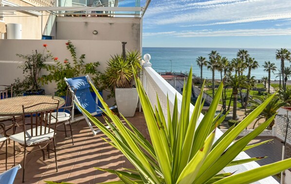 Are you looking for a small, inviting apartment that offers you an excellent location for a lovely beach vacation for two? Then you've come to the right place! You can relax in the bright eat-in kitchen and conjure up your favorite dishes together, which you can eat on your terrace with a sea view. You can also enjoy your siesta here with cool refreshments. Once you've had your fill, you can take the few steps to the beach and laze on the sand.