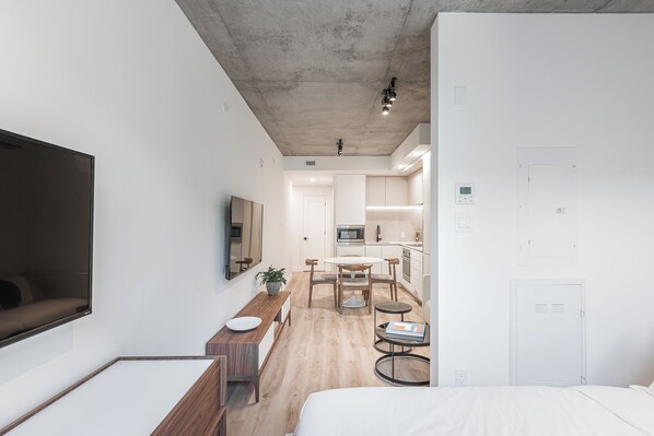 Nestled in the lively Quartier Ville-Marie, this studio places you at the center of Montreal’s cultural heartbeat. Explore a diverse range of dining options, from quaint cafes to gourmet restaurants, all within walking distance. The area is also home to art galleries, theaters, and vibrant nightlife, ensuring there’s always something to see and do. Enjoy leisurely strolls through nearby parks or along the charming streets, and take advantage of excellent public transportation options to discover other iconic sites like the historic Old Port and Mount Royal.