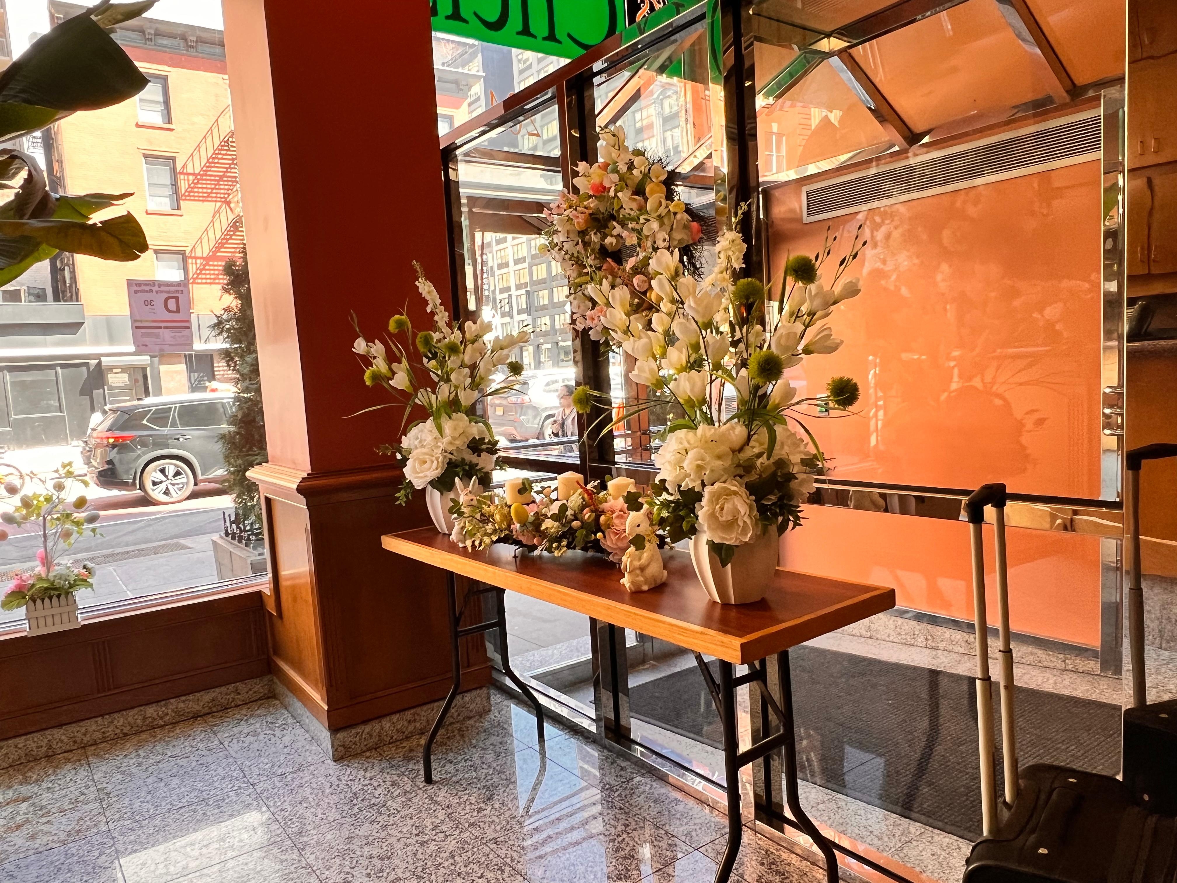 This was a comfortable stay on a relatively quiet street. We appreciated the fresh coffee, bakery bagels and muffins every morning in a spacious sitting area. Subway line 1 right across the street takes you to shows, and West Village and East Village are both an easy walk from here. The room was clean and spacious and the service was friendly. Not too fancy but just right!