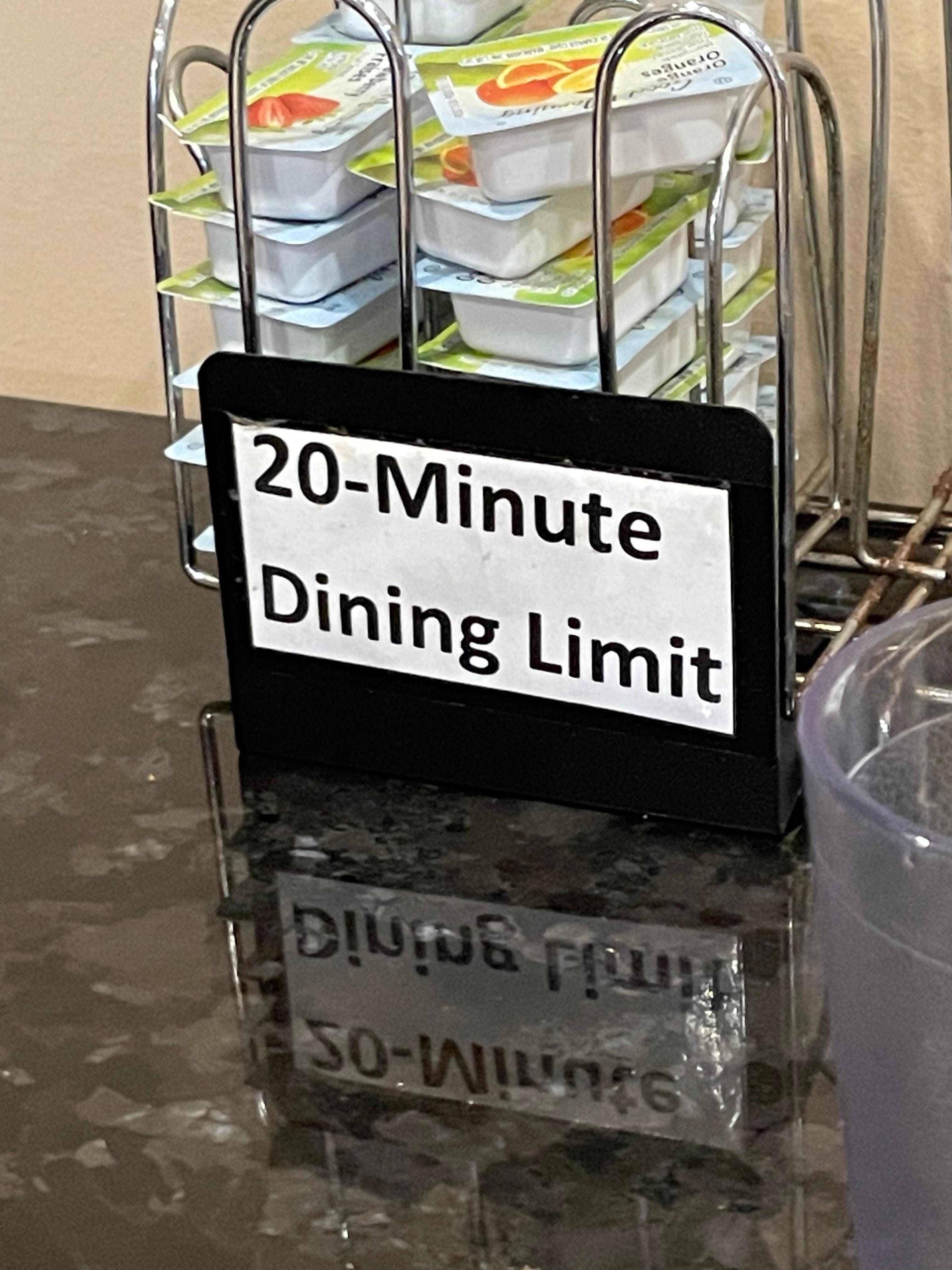 Breakfast you have to check in with your room # and given you 20 minutes to eat. There are signs saying that you have a limit before you have to leave. The food was awful! The pool/hot tub was ok until we found a bandage stuck to the side.
