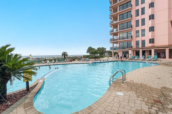 Located in one of Orange Beach's most desirable locations with amenities galore! Guests can enjoy four outdoor pools, including a zero-entry pool, a heated indoor pool, four hot tubs, two saunas, a children's pool and splash pad, a fitness center with Gulf views, and a tennis court.