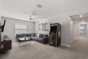 aquesta vil·la és a Champions Gate, a prop de parcs temàtics a Four Corners. Camp de Golf Reunion Resort i Club de Golf Mystic Dunes són dues opcions excel·lents per a aquells que busquen unes vacances actives: afegeix-les al teu itinerari juntament amb altres atractius turístics com ara Ciutat Vella i Walt Disney World® Resort. Et ve de gust gaudir d'un esdeveniment o d'un partit? Consulta els actes que se celebren a ESPN Wide World of Sports Complex; intenta buscar temps per visitar Parc Temàtic Regne Animal de Disney, un lloc d'interès molt popular. Rutes en moto aquàtica i caiac són activitats aquàtiques fantàstiques que pots fer a prop; si t'ho estimes més, també pots animar-te a provar disciplines com l'equitació i el ciclisme a la zona.