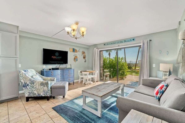 Después de un largo día de diversión bajo el sol, relájate en el sofá y hojea los canales de cable mientras el aire acondicionado central te mantiene fresco. Mientras disfruta de una bebida helada en el patio, use el WiFi para verificar el pronóstico antes de reservar un crucero al atardecer. Tome algunas fotos de sus impresionantes vistas y vida marina y luego regrese al condominio para comenzar a cenar.