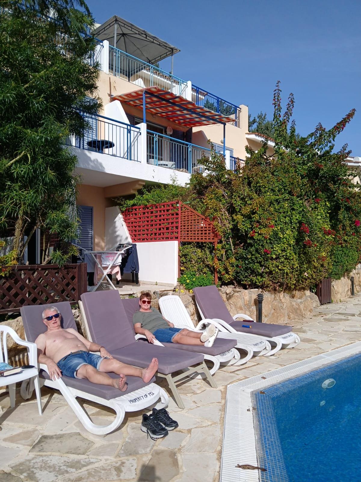 The complex has two large swimming pools with poolside showers and sun loungers. In addition, there are four sun loungers provided for the exclusive use of guests staying at Paradise Villa.